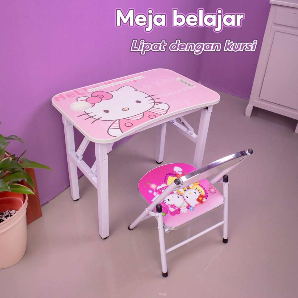 MEJA BELAJAR PORTABEL ANAK LIPAT DENGAN KURSI MOTIF KATUN LUCU