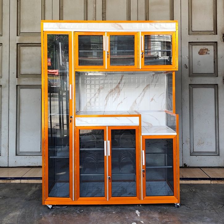 [Mall] Rak Piring Aluminium 4 Pintu Roda (Free Ongkir Serang Banten)