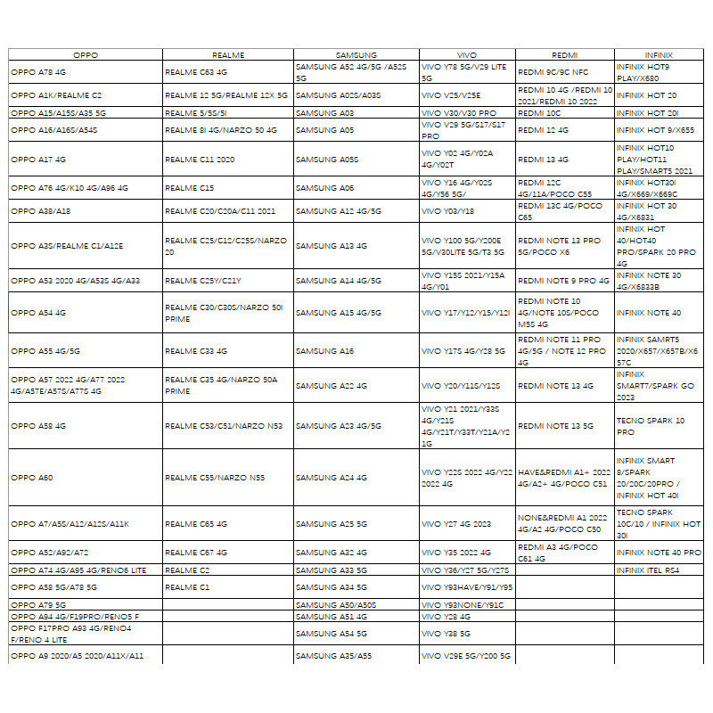 REDMI 9C/9C NFC, REDMI10 4G 2021/2022, REDMI 10C, REDMI 12 4G, REDMI 13 4G, REDMI12C/11A/POCOC55, REDMI 13C 4G/POCOC65, REDMI NOTE 13 PRO 5G, REDMI NOTE 9PRO 4G, REDMI NOTE10 4G/10S, REDMI NOTE 11 PRO, REDMI NOTE 12 PRO 4G, REDMI NOTE 13 4G, REDMI NOTE 13 5G, NONE&REDMI A1/A2 4G, HAVE&REDMIA1+/A2+ 4G, REDMI A3 4G/POCOC61, REDMI POCO M6PRO, REDMI 14C/A3 PRO, REDMI NOTE 14 4G, REDMI NOTE 14 PRO 4G, REDMI NOTE 14 PRO+, NOTE14PRO 5G/POCO X7, REDMI NOTE 14 5G, REDMI NOTE 14S