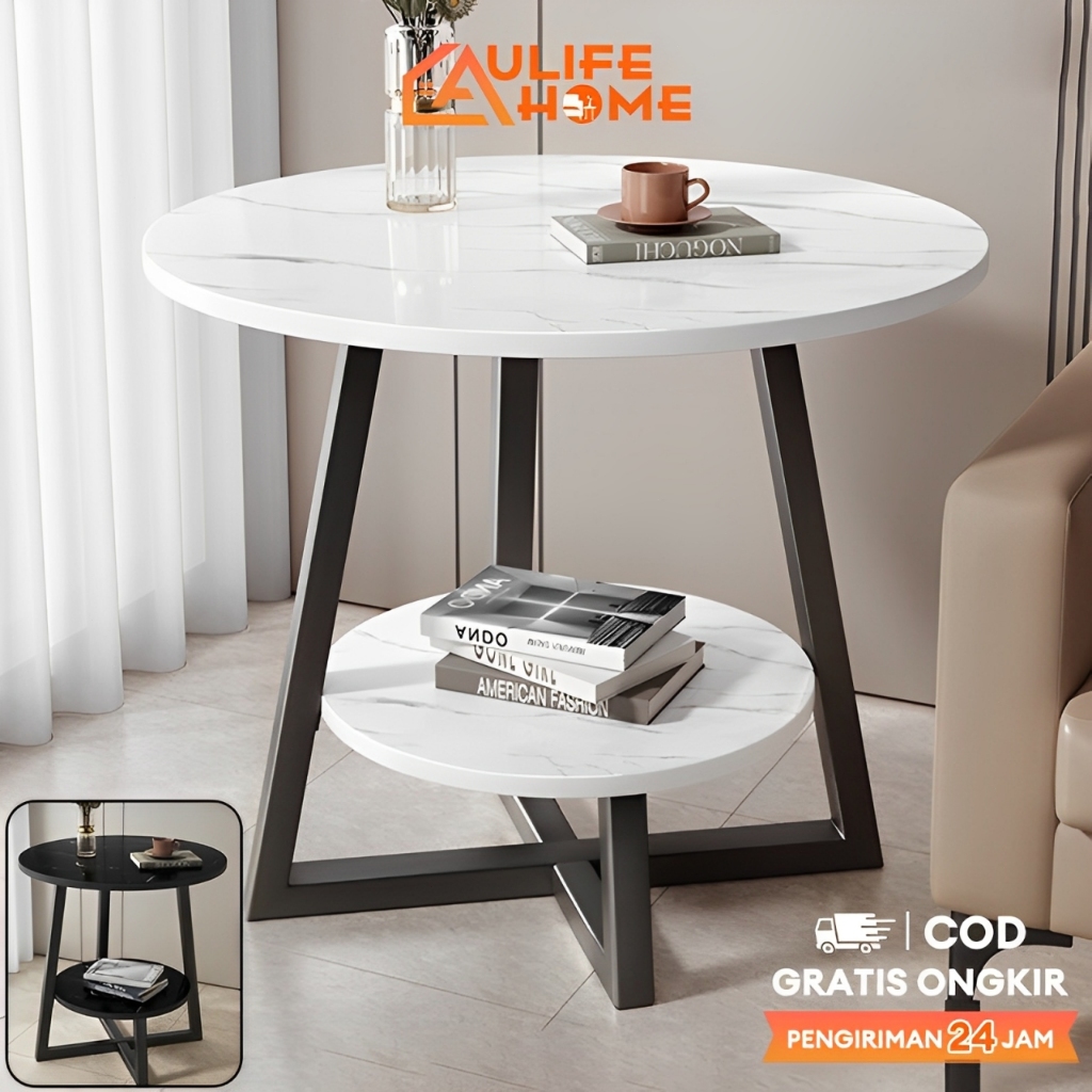 Meja Ruang Tamu Marmer Meja Kopi Besi Meja Bulat 2 Susun Meja Minimalis Tamu Meja Pojok Bunga
