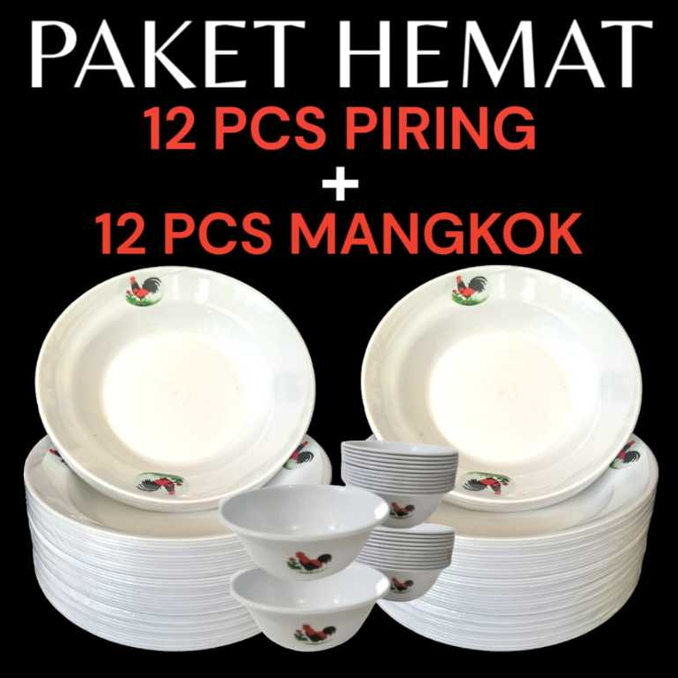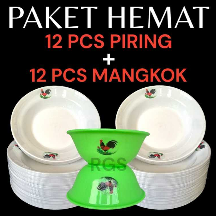 PAKET HEMAT 12 PIRING + 12 MANGKOK AYAM JAGO BPA FREE berat 1 kg
