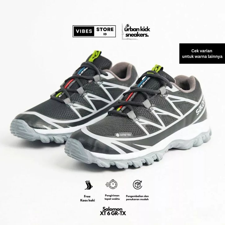VIBESSTR Salomon XT6 Hitam Putih Abu Abu GR TX Sneakers Outdoor Running dan Casual OOTD Unisex