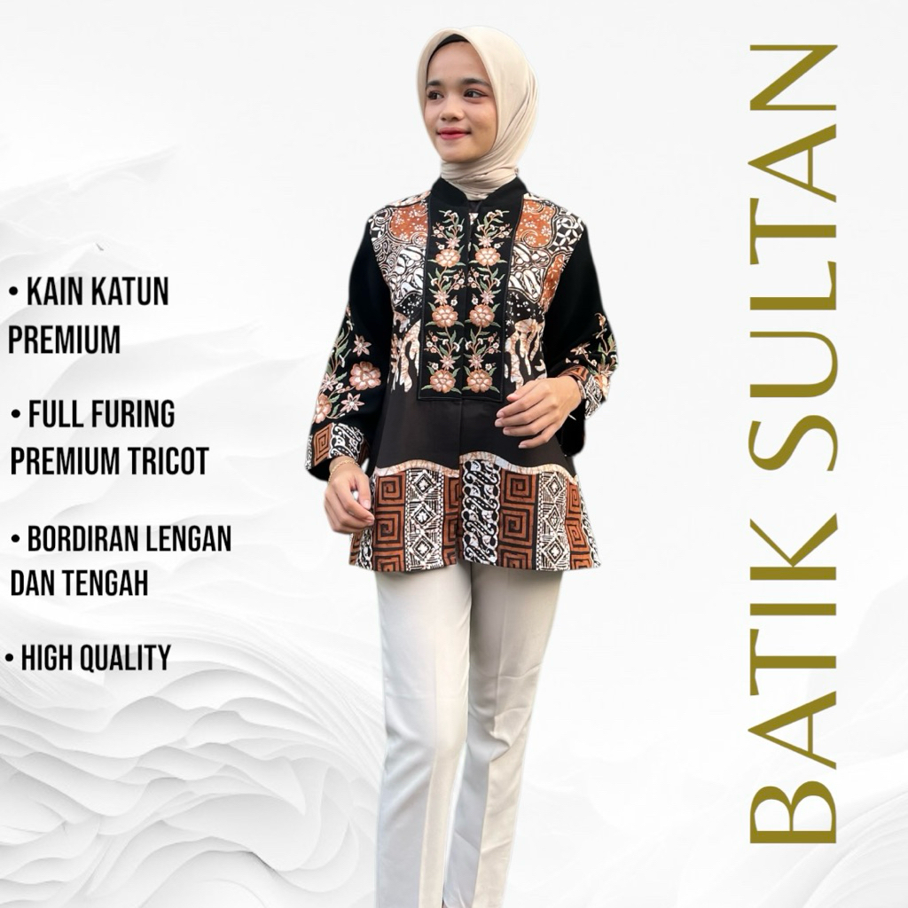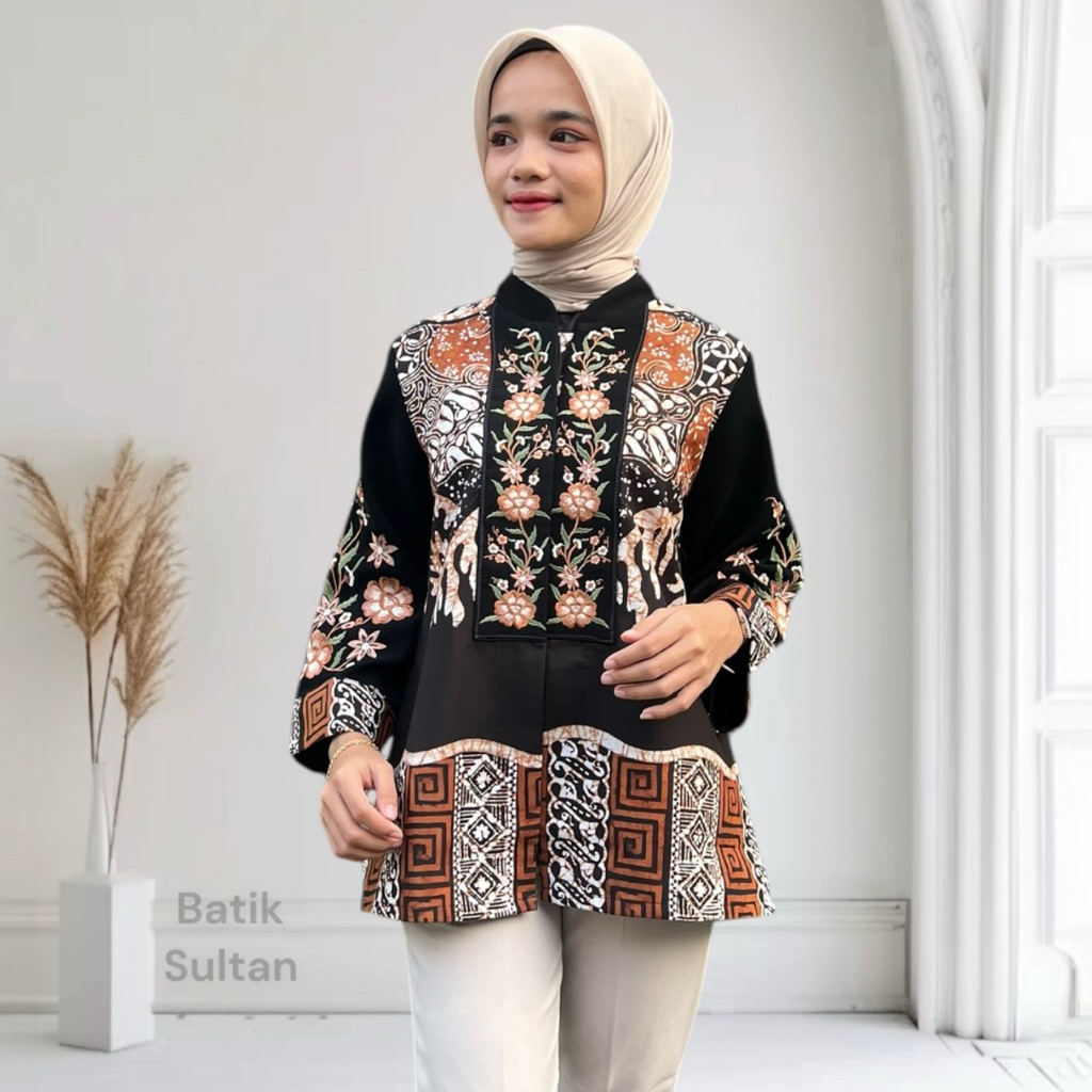 ATASAN BATIK BLOUSE WANITA BORDIRAN PREMIUM KAIN KATUN ELEGAN L BATIK CEWE MEWAH KANTOR KONDANGAN TERKINI KAIN SOGAN EXC