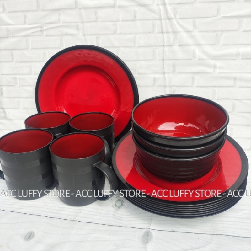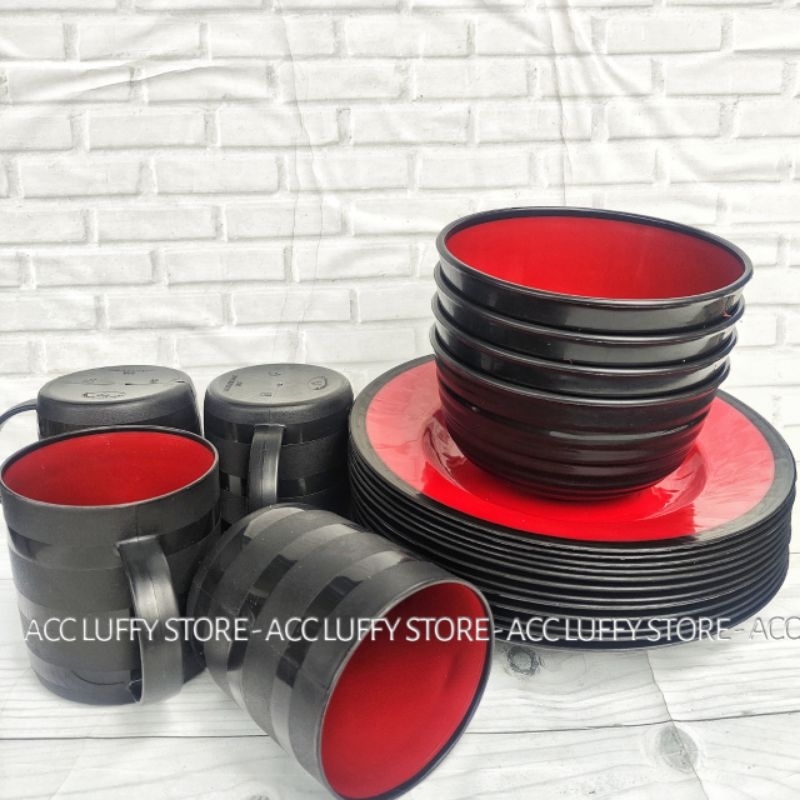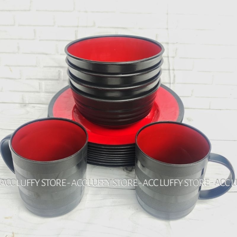 SATU SET ISI 1 LUSIN (4 Piring+ 4 Mangkok+ 4 Gelas) Piring Ramen - Mangkok Ramen - Gelas Ramen plastik