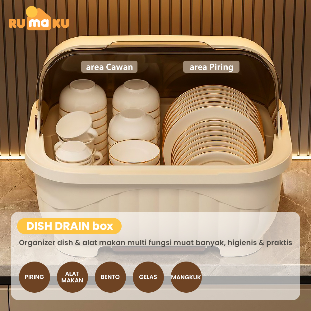 Rumaku Rak Piring Tertutup Minimalis Tempat Penyimpanan Alat Makan Mangkuk Sendok Sumpit Garpu