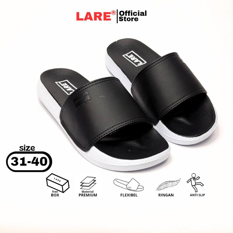 LARE Sandal Anak Laki Laki Unisex Black White Slop Polos