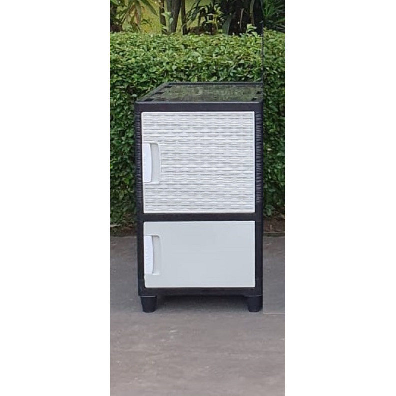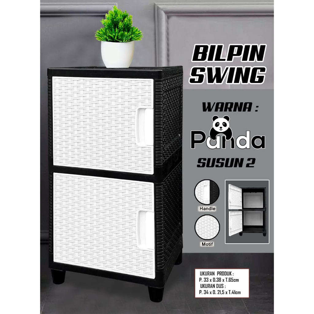 PANDA Lemari Baju Pakaian Plastik AKAKO 2 Pintu Laci Rotan MInimalis PANDA Hitam Putih Full KUNCI