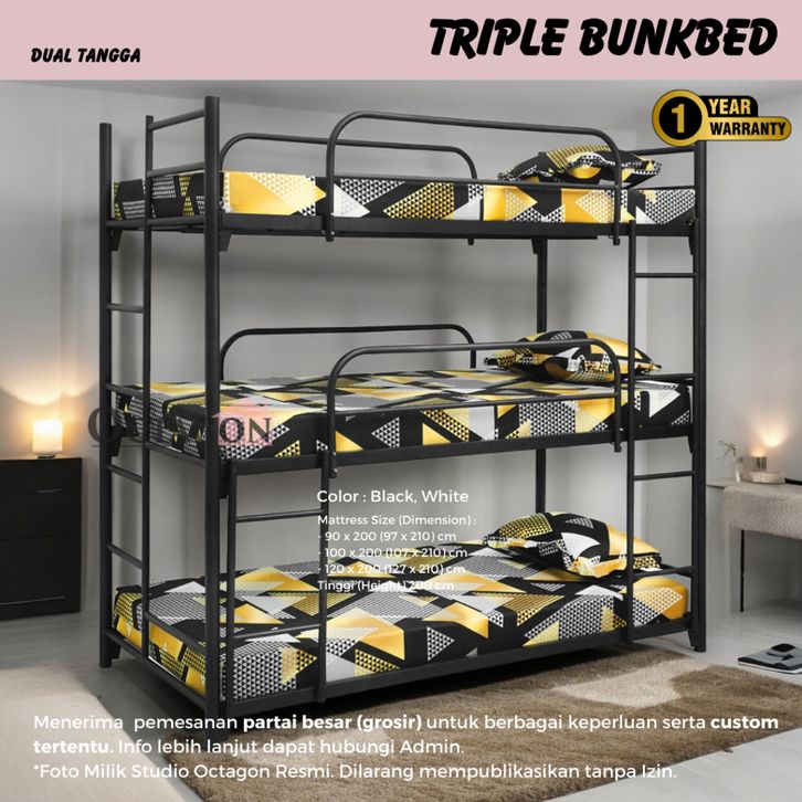 Ranjang Susun 3 Tingkat Besi Minimalis Dual Tangga (S3)