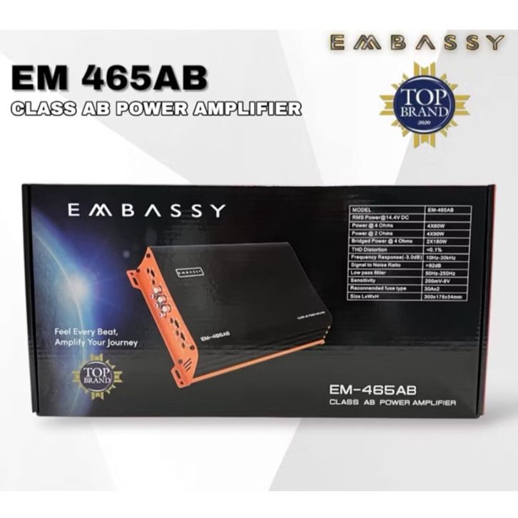 Power/Amplyfier 4chanel EMBASSY EM-465AB Tenaga Besar 12Volt (Mobil)
