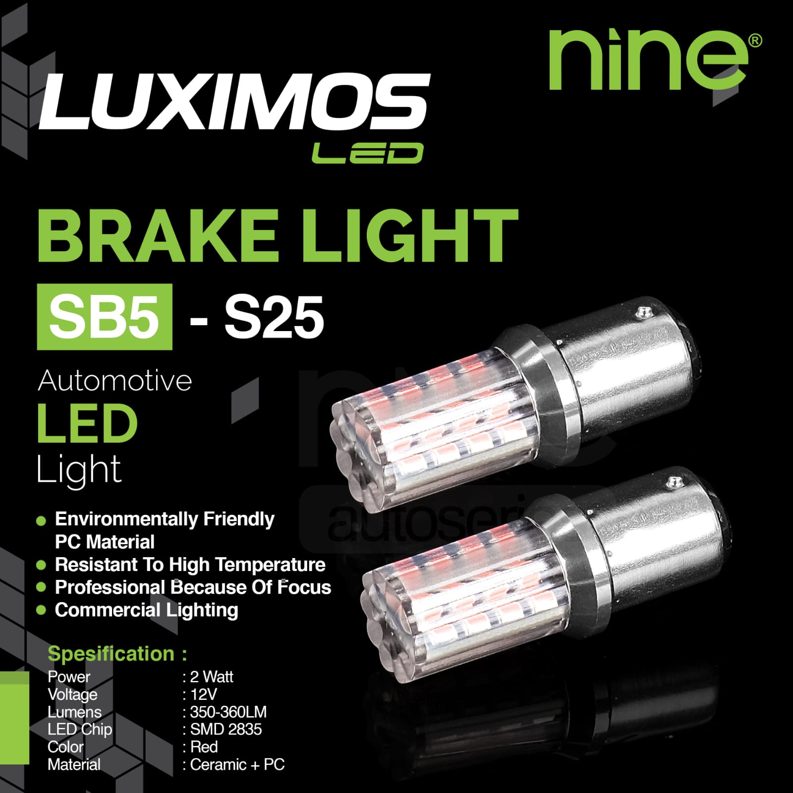 LAMPU LED REM MOTOR MOBIL NINE LUXIMOS SB5 S25 T20 KEDIP FLASH 2 WATT 350 LUMENS SMD 2835 SUPER BRIGHT