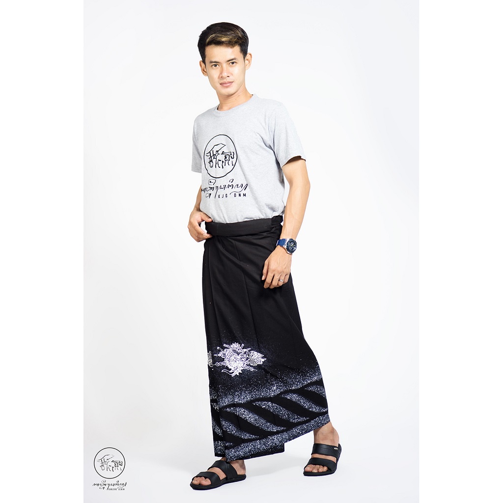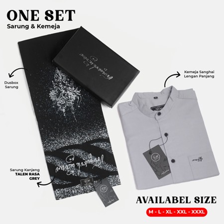 One Set Sarung Kanjeng Motif Talirasa Grey & Kemeja Sanghai Lengan Panjang CF