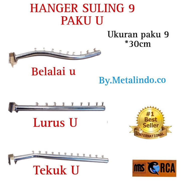Hanger suling MBS Untuk pipa kotak dan tembok Gantungan Baju 6 paku , 9 paku , 12 paku stainless