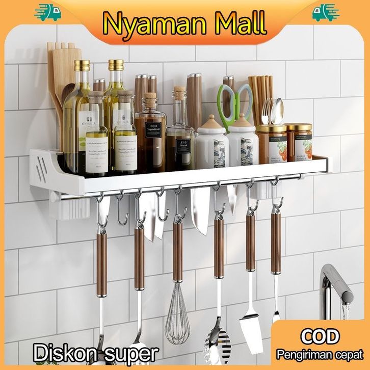 ( )Rak Dinding Dapur Kitchen Rack Tempat Bumbu Rak Gantung Pisau/Sendok Rempah Multifungsi Rak Tempel Tanpa Bor