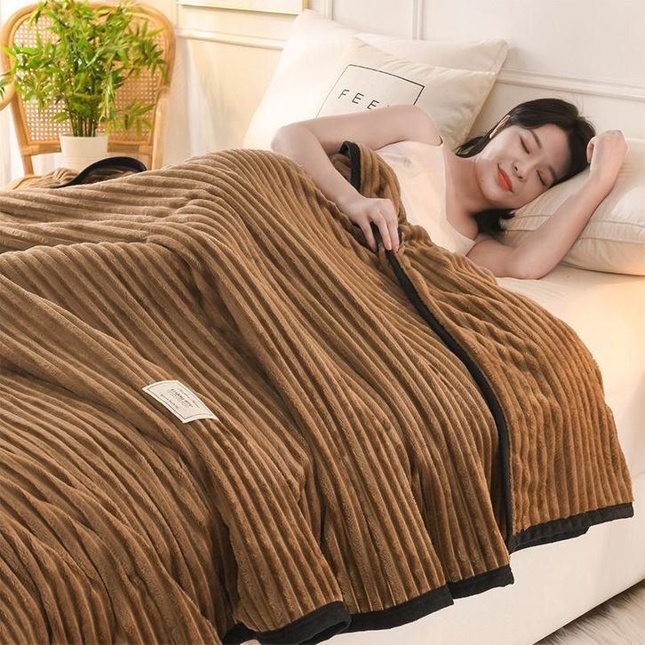 Selimut Bulu Halus Salur Dewasa Motif Polos Aesthetic Murah Terlaris Elegant 180x200/200x230 New Arrival