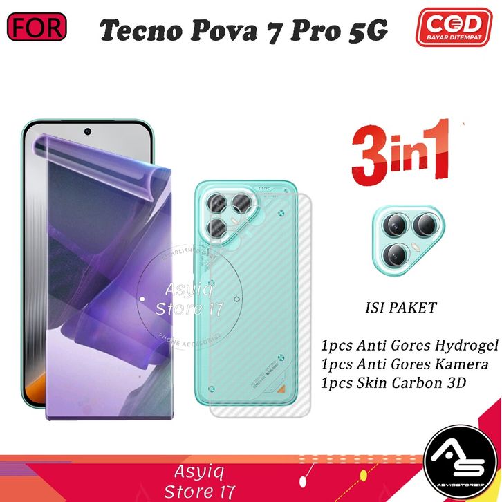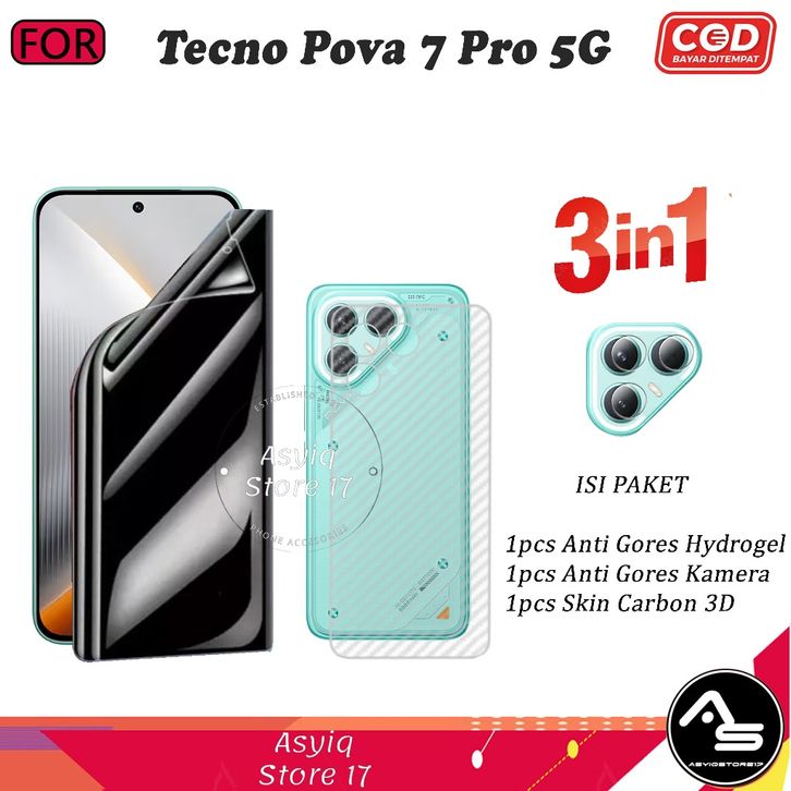 (TERMURAH)PAKET Hemat 3IN1 Anti Gores Hydrogel Matte Tecno Pova 7 Pro 5G Pova 7 Ultra Pova 7 4G 5G Full Cover