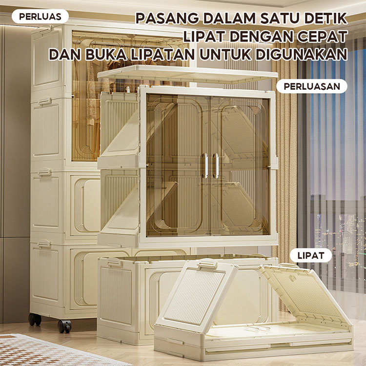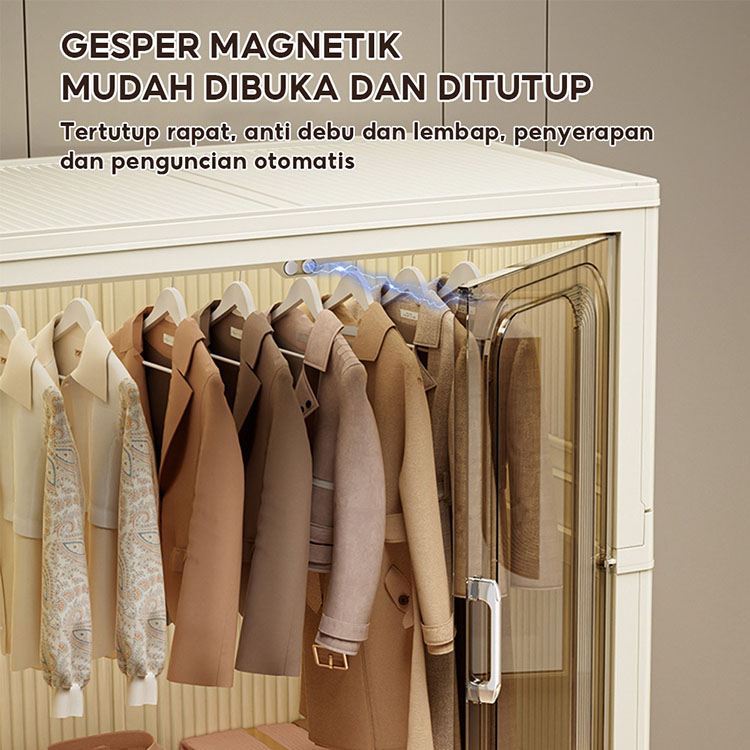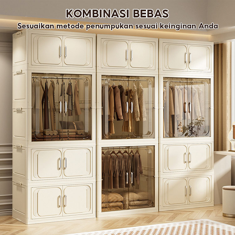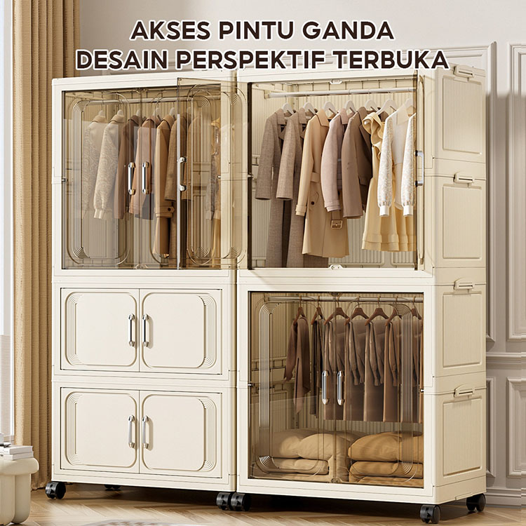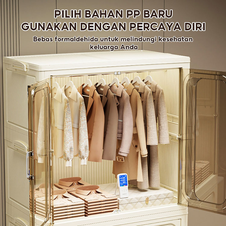 Lemari Tas Rak Pakaian Plastik Dapat Dilipat 2/3 Tingkat Susun Rak Lipat Lemari Baju Dengan Gantungan Estetik Minimalis