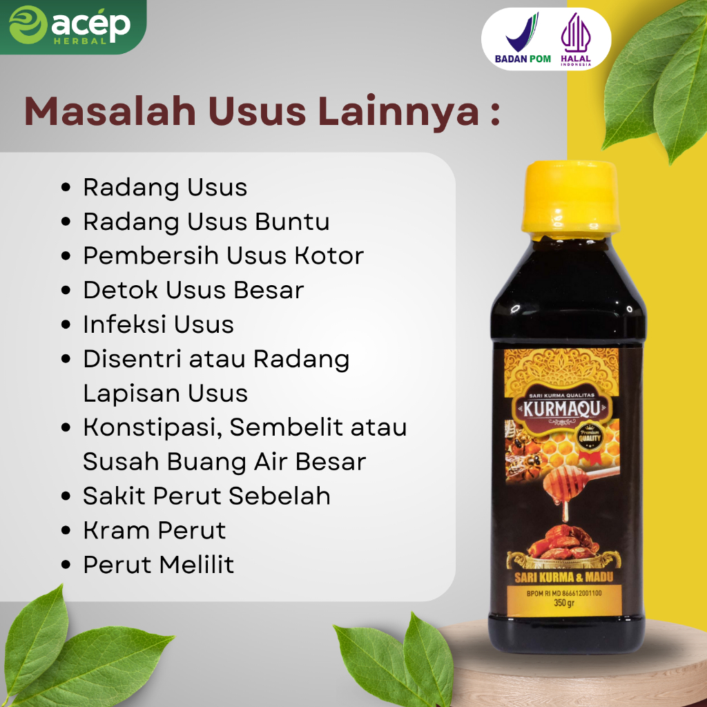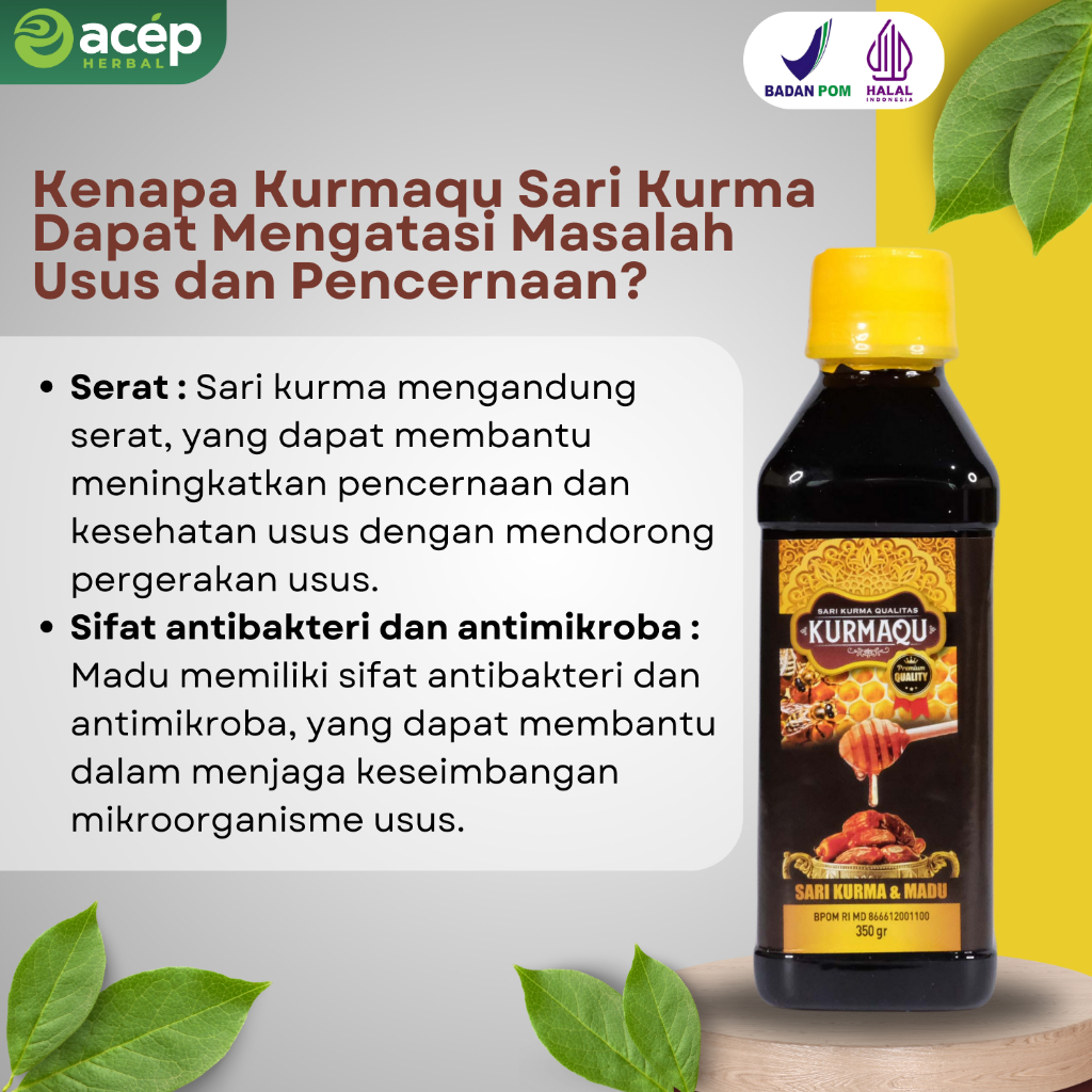 Solusi Usus Kotor - Detok Usus Besar Kurmaqu - Madu dan Sari Kurma - Bahan Gula Buah Syrup Honey - Isi Bersih 350gram/Botol - Alami Halal dan BPOM