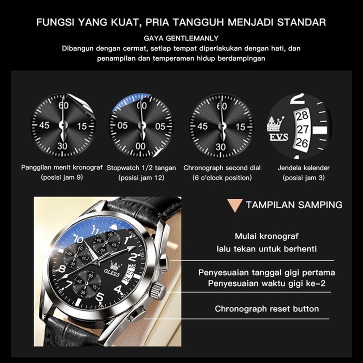 OLEVS Jam Tangan Pria Anti Air Original ahan kulit Keren Led Multifungsi Chronograph Watch Men 2878