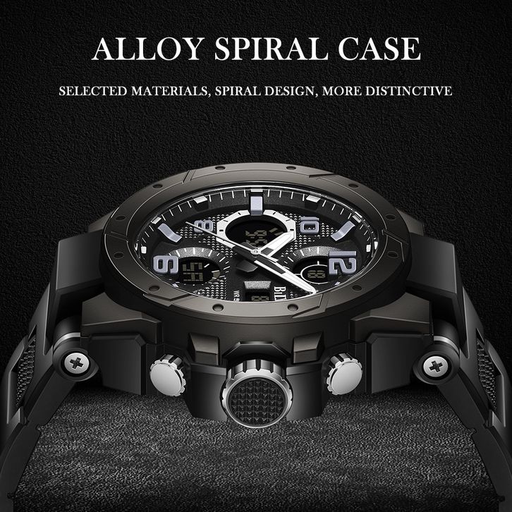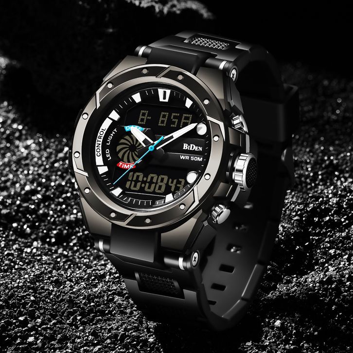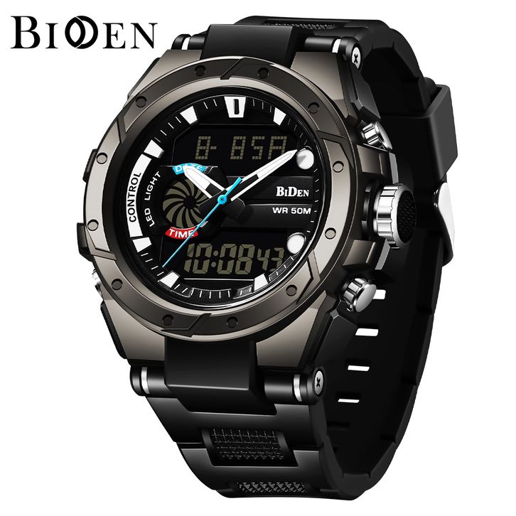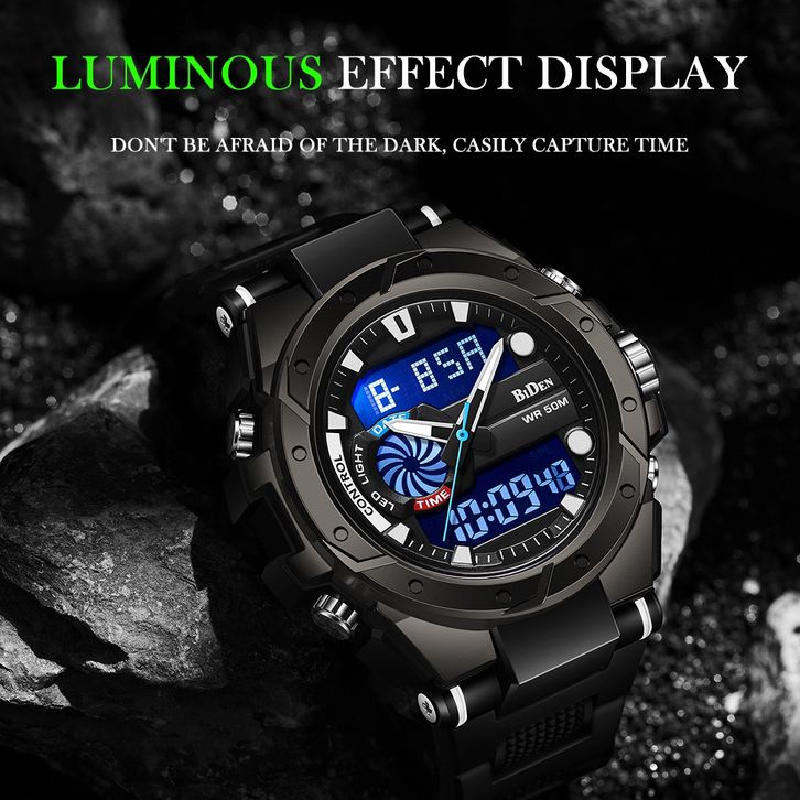 BIDEN Jam Tangan Pria Anit Air Digital Analog Olahraga Bercahaya Multifungsi Tali Silikon Jam Tangan