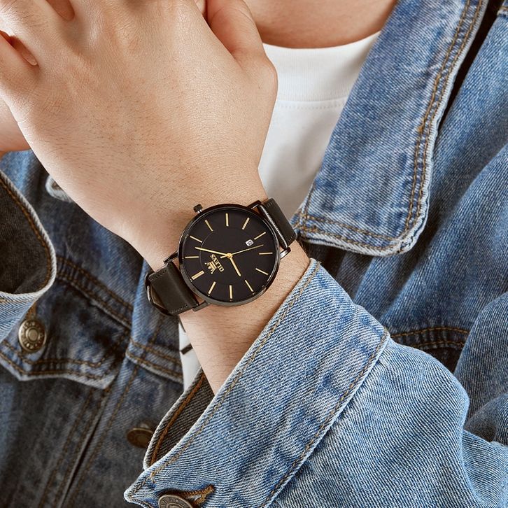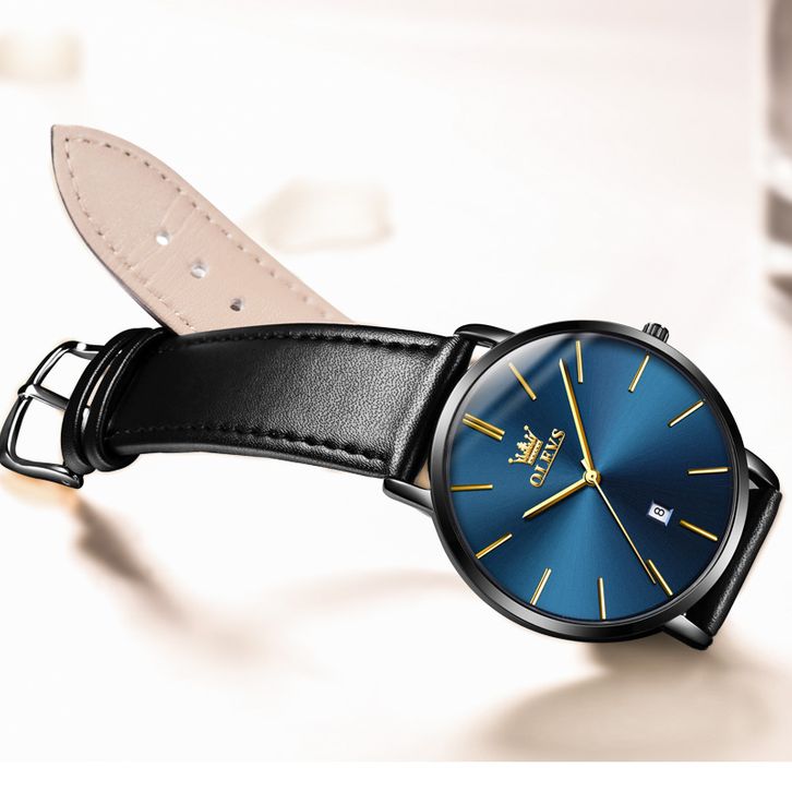 OLEVS Jam Tangan Pria Cowok Original Anti Air Tahan Sport Kulit Analog Watch Men Hitam Putih Biru