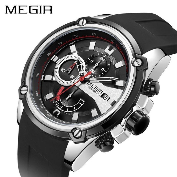 MEGIR 2086 Jam Tangan Pria Analog Chronograph Aktif Aktif Tali Silicone CURRENOS