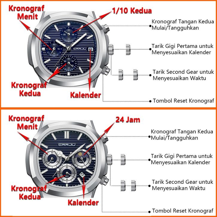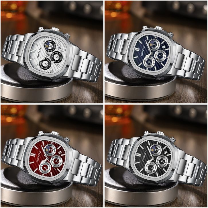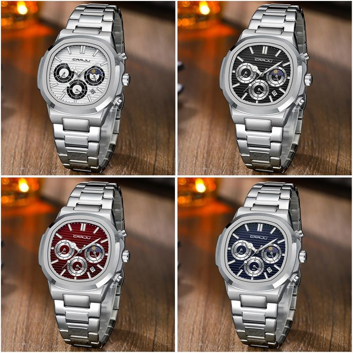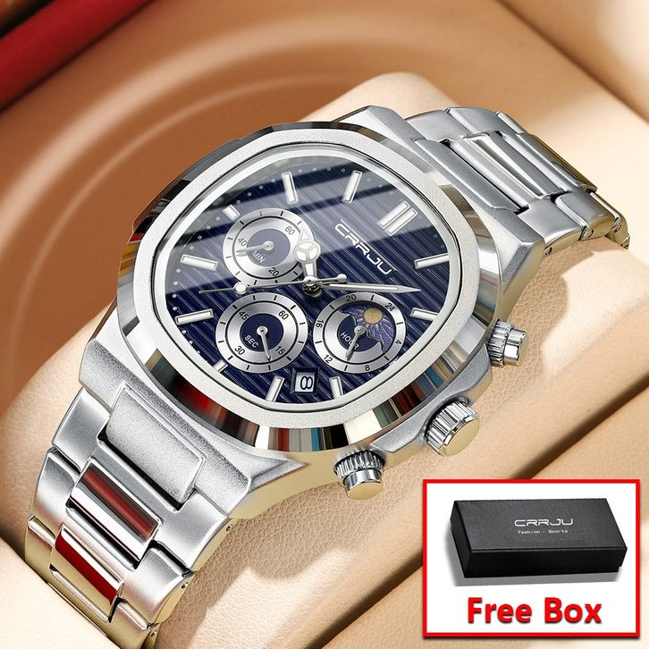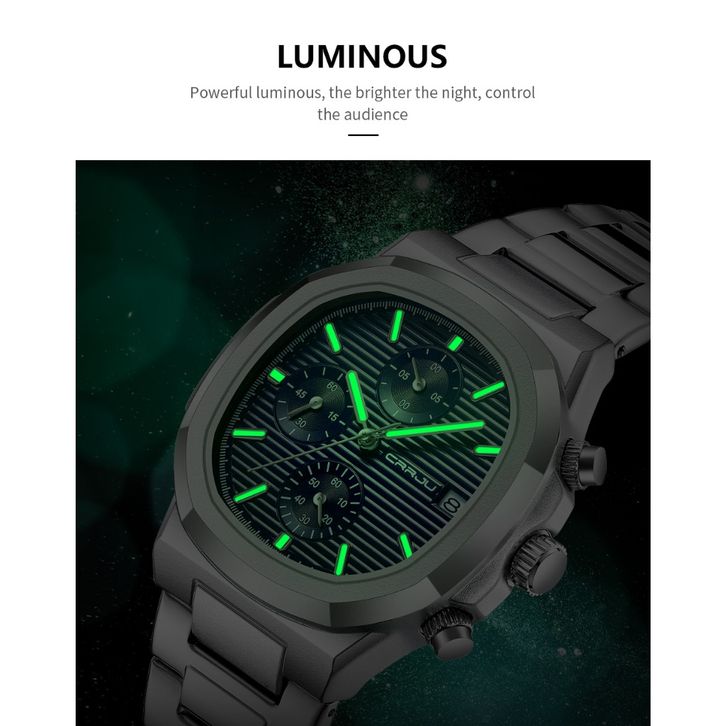2024 Keren CRRJU Original Jam Tangan Pria Fashion Bercahaya besi tahan karat Anti Air Sports