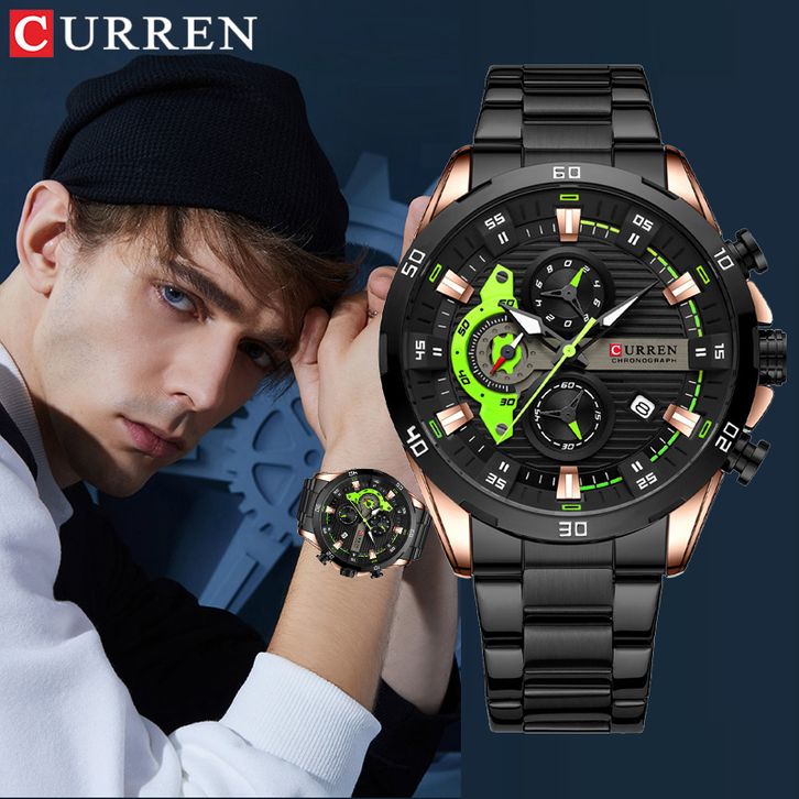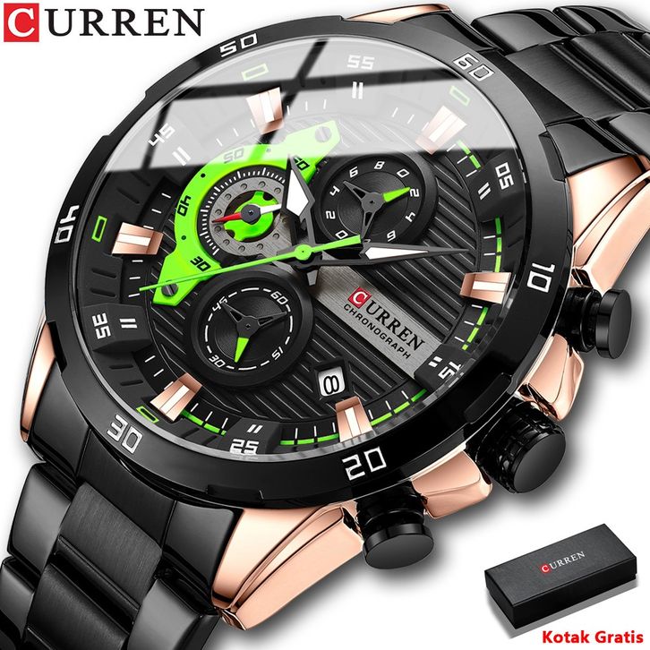CURREN Jam Tangan Pria Fashion Tahan Air Baja Tahan Karat Olahraga Kronograf Jam Tangan Bercahaya