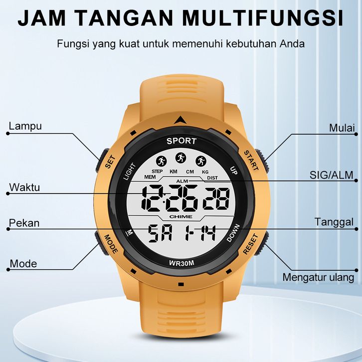 Sunlifex Jam Tangan Pria Digital Olahraga Mode Tali Silikon Alarm Jam Tangan Cowok
