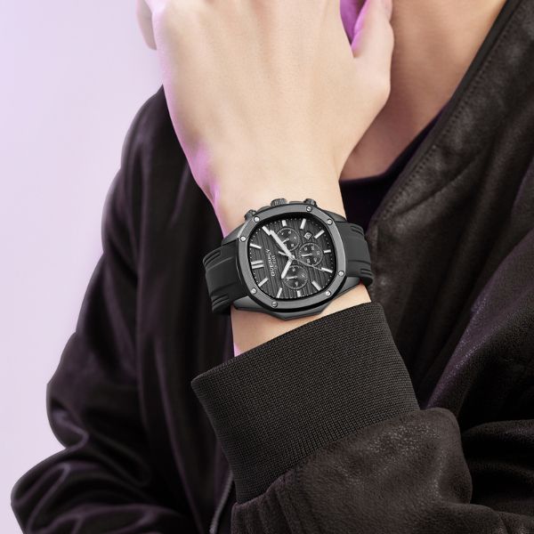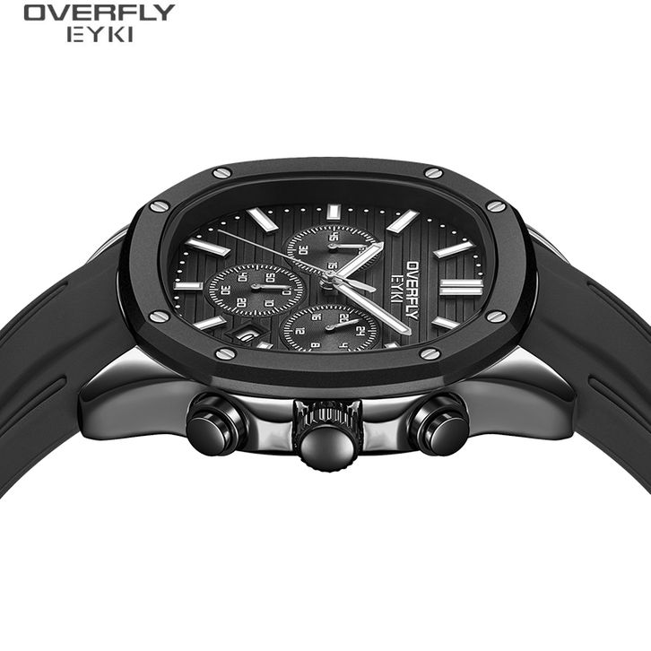 EYKI Jam Tangan Pria Silicon Black Hitam Chrono Terbaru Sport E3206L