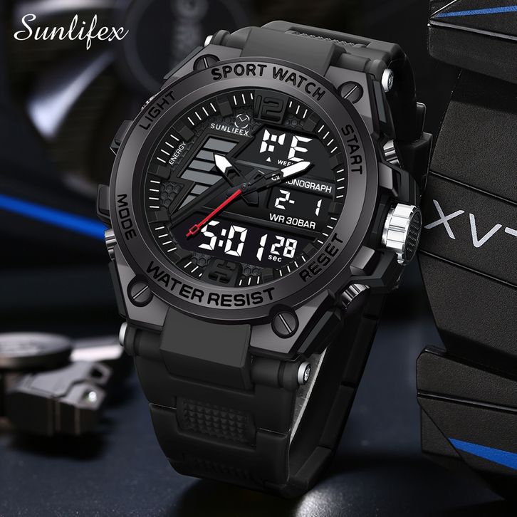 Sunlifex D004Pro Jam Tangan Pria Digital Multifungsi Luminous Tali Silikon Anti Air Jam Tangan Cowok