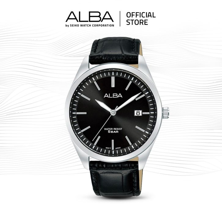Alba Prestige Jam Tangan Pria AS9S27 / AS9S27X1 Quartz Black Dial Genuine Leather Strap Watch