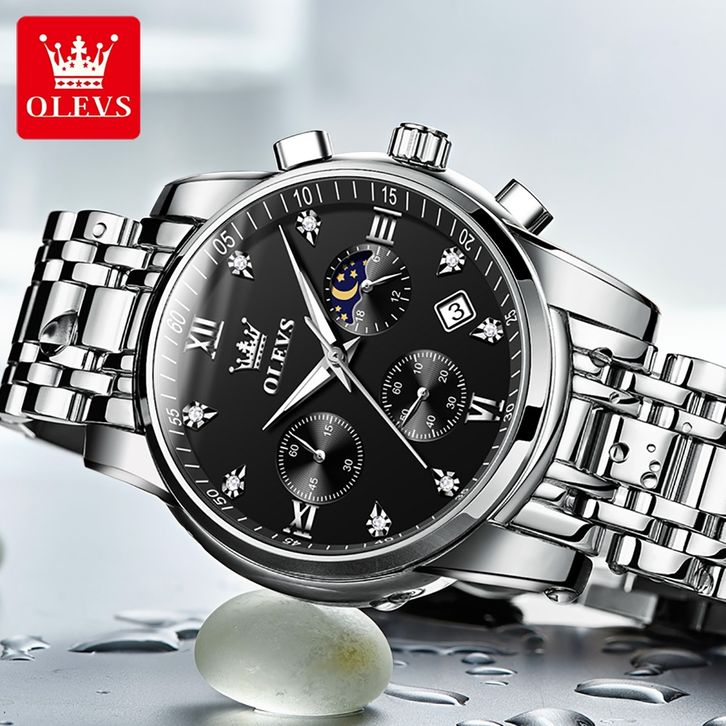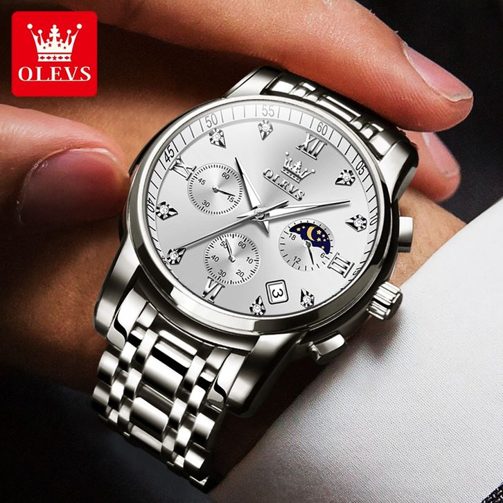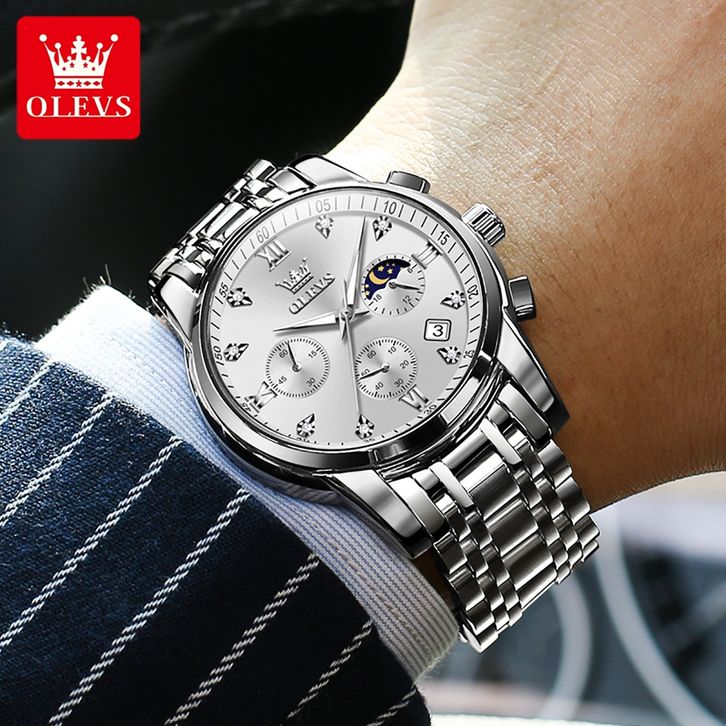 OLEVS Jam Tangan Pria Anti Air Original Stainless Steel Terbaru Mewah 2025 Chronograph Multifungsi