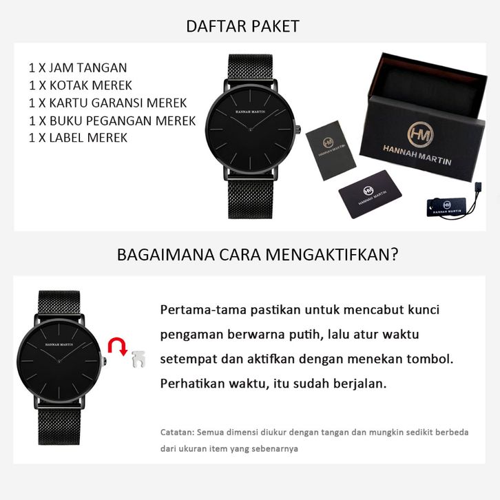 HANNAH MARTIN Jam Tangan Pria Sangat tipis 100% Original Fashion Cowok anti air Quartz Men Watch