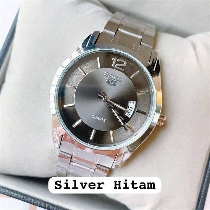 Jam Tangan Pria Rantai Stainless Body Bulat Tanggal Aktif Bonus Box dan Baterai Cadangan