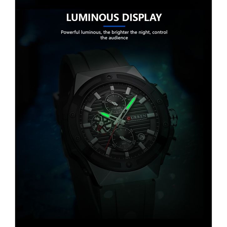 CURREN Jam Tangan Pria Anti Air Kuarsa Kronograf Bercahaya Original Tali Silikon Jam Tangan Cowok