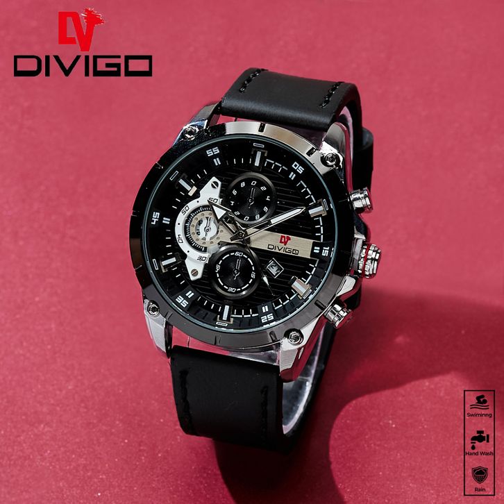 Jam tangan Pria Divigo Original DV-7017-1 Strap Kulit Tanggal Aktif Tahan Air