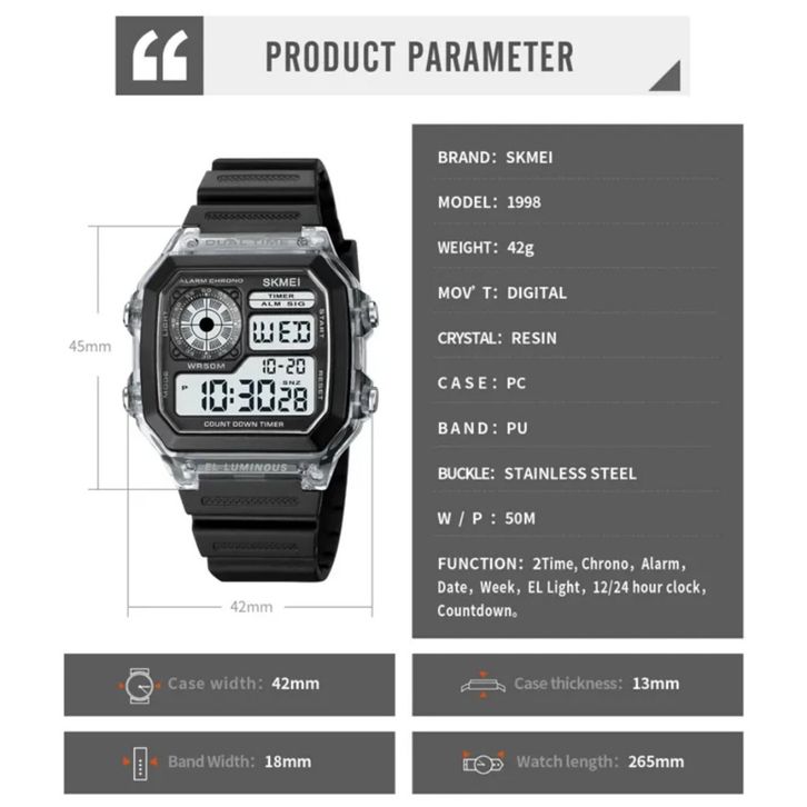 Jam Tangan Pria Digital SKMEI 1998 BLACK water resis 30m