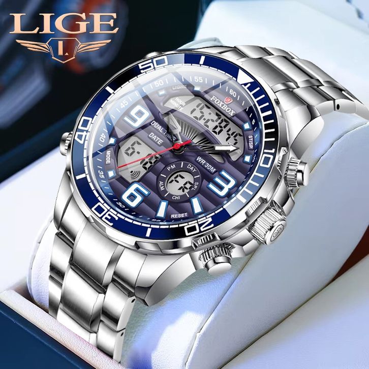 LIGE Original Jam Tangan Pria Digital Dual Display Watch Men's Top Luxury Sport Quartz Watch Men's