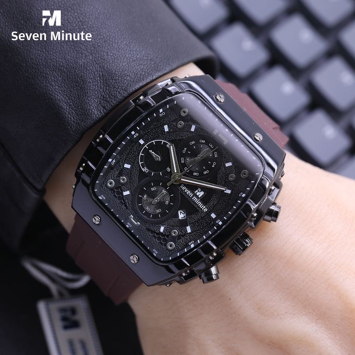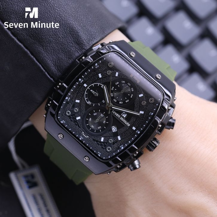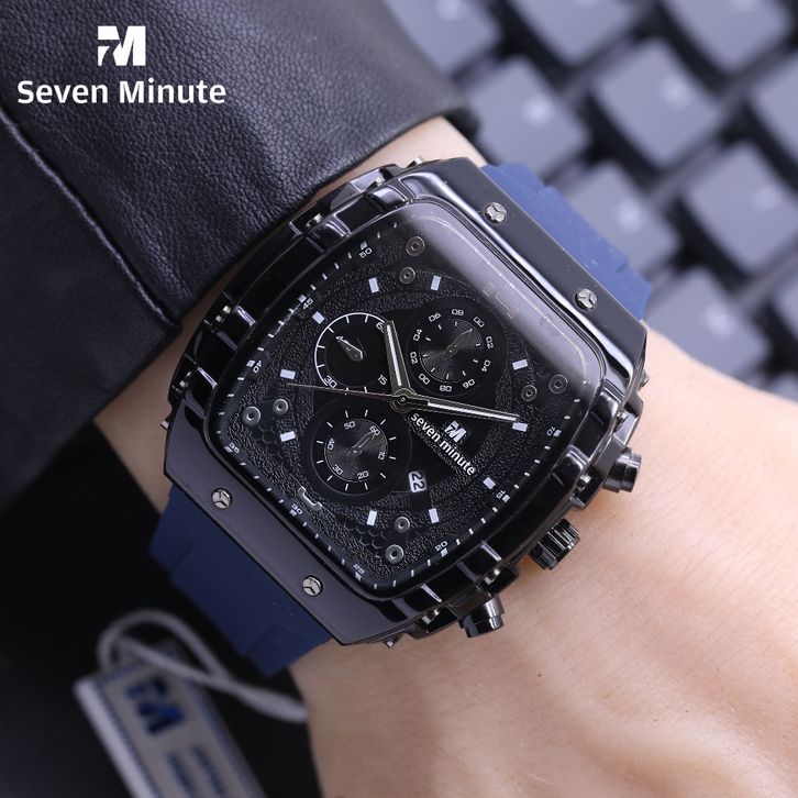 SEVEN MINUTE M723 Jam tangan pria balok silver rubber tanggal watches original
