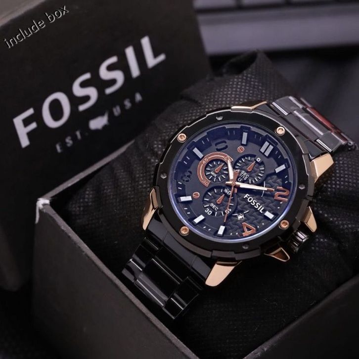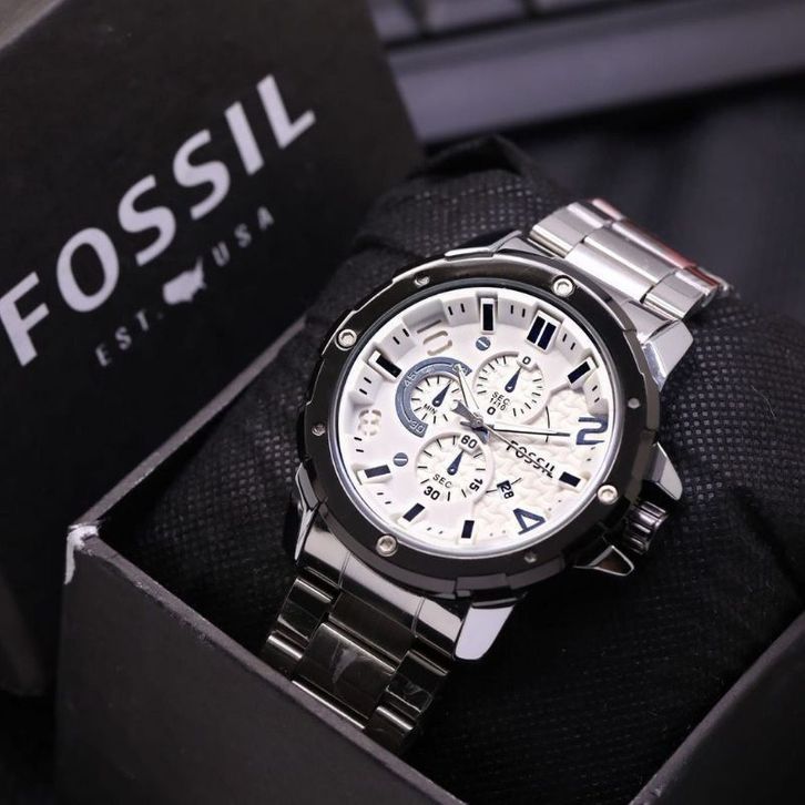 Terlaris - Jam Tangan Fashion Pria L6121 Super Premium Model Chrono Strap Rantai Elegan ( Free Box