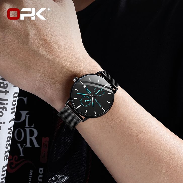 OPK Jam Tangan Pria Anti Air Original Unik Terbaru 2025 Bisnis Stainless Steel Luminous Kalender