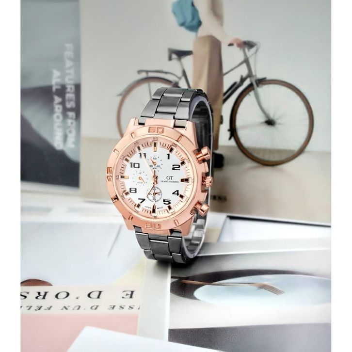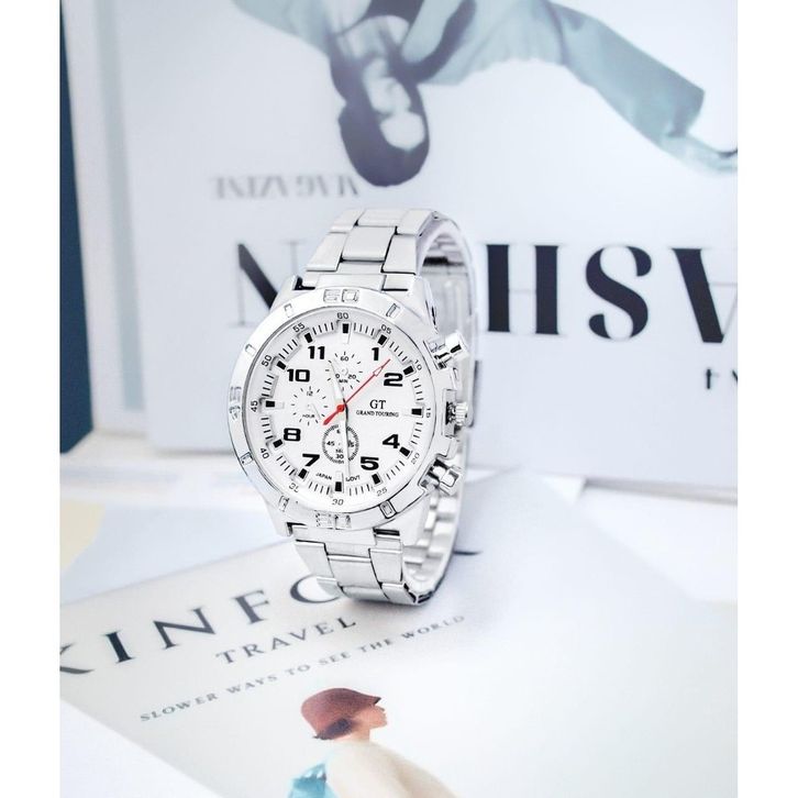 WBS Jam Tangan Pria GT Sport Chrono Grand Touring Rantai Stainlee Steel Korea Fashion Quartz Silikon