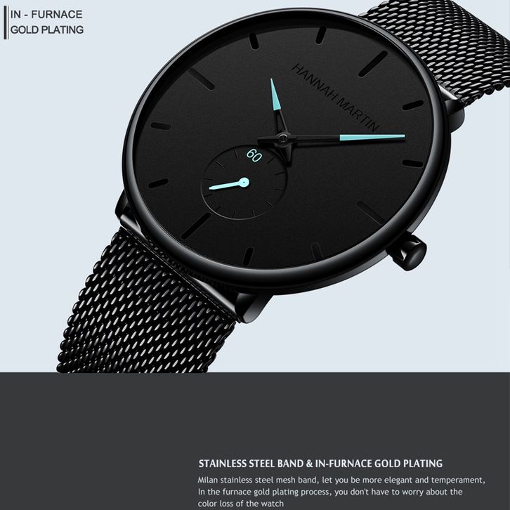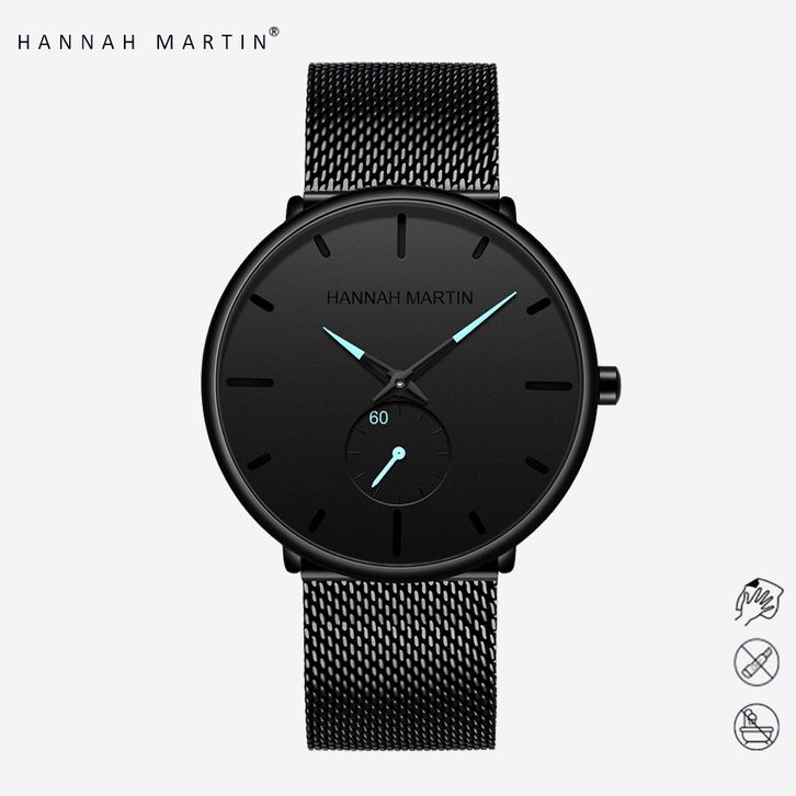 HANNAH MARTIN Jam Tangan Pria Sangat tipis 100% Original korea fashion Cowok anti air Quartz Arloji