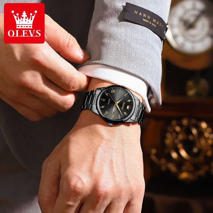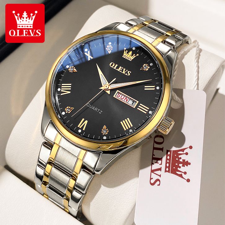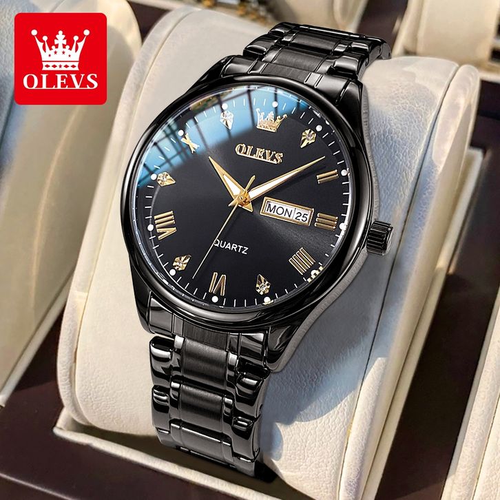 OLEVS Jam Tangan Pria Anti Air Original 100% Mewah Keren Stainless Steel Tahan Kalender Luminous