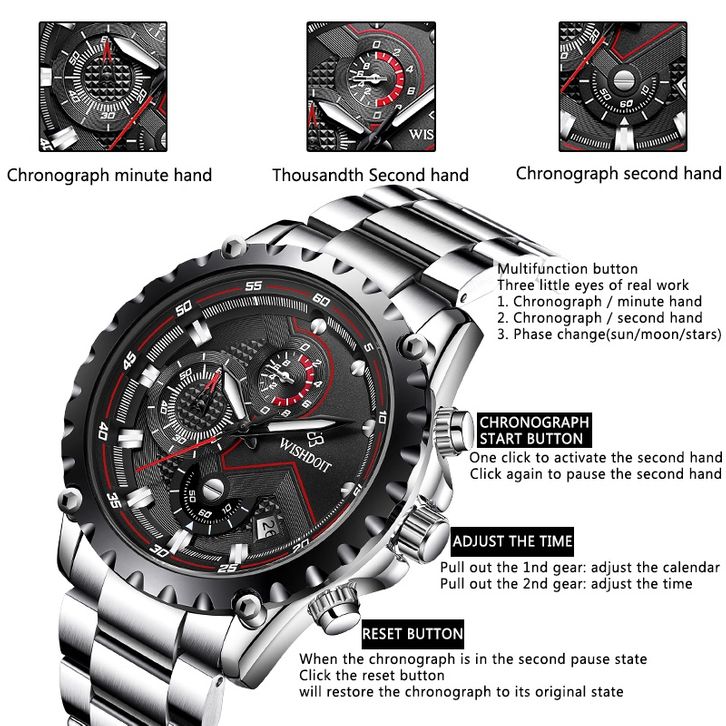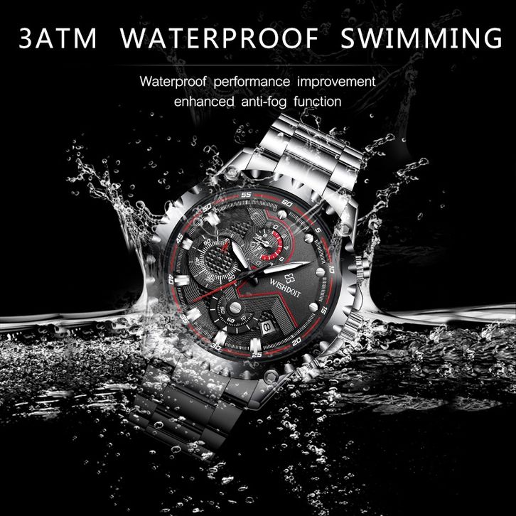 WISHDOIT Jam Tangan Pria Anti Air Asli 2025 Terbaru Mewah Baja tahan karat Bisnis Kalender Bercahaya