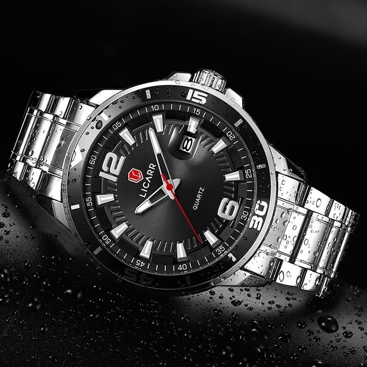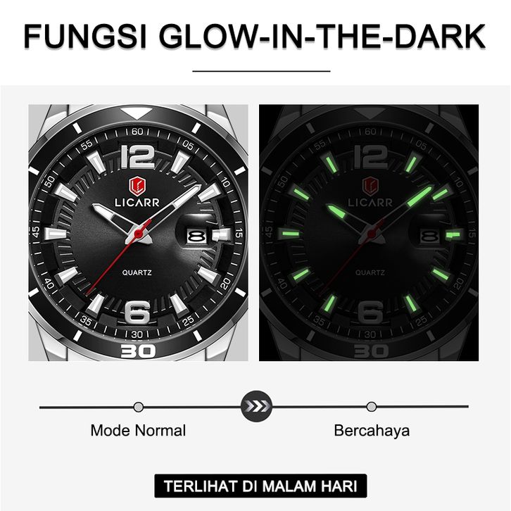 LICARR Jam Tangan Pria Mewah Kuarsa Stainless Steel Business Anti Air Santai Tanggal Olahraga Jam