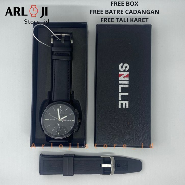 TERLARIS SNILLE Jam Tangan Pria 100% Original Tali Kulit Quartz Cowok Kasual Analog Dial Bulat Strap