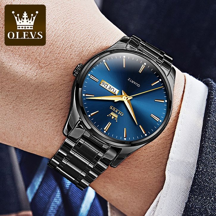 OLEVS Jam Tangan Pria Anti Air Original Luxury Kalender Rantai Anti Karat Bercahaya Men Watch 6898