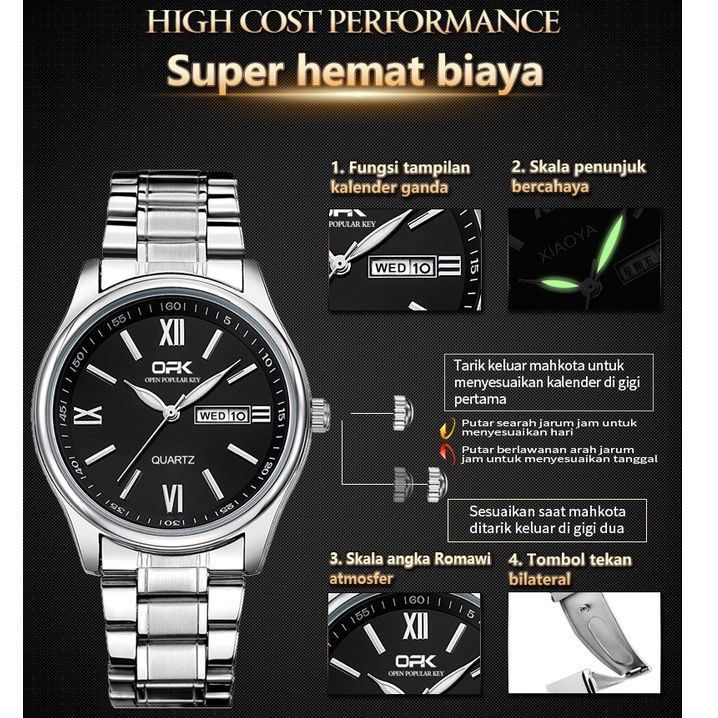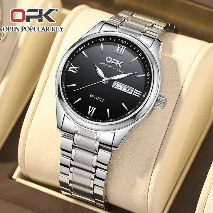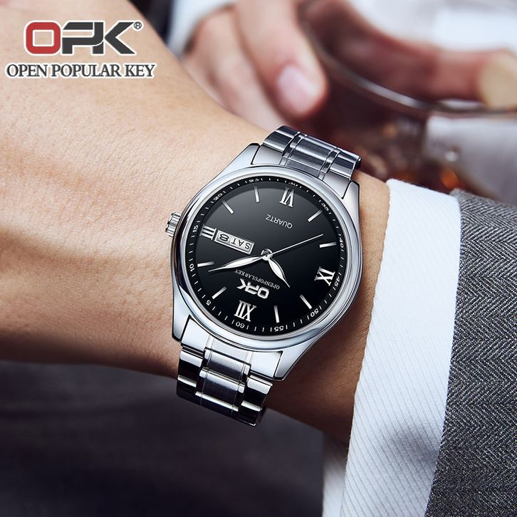 OPK Jam Tangan Pria Anti Air Original Stainless Steel Tanggal Bercahaya Kuarsa Analog Wrist Men