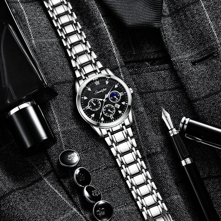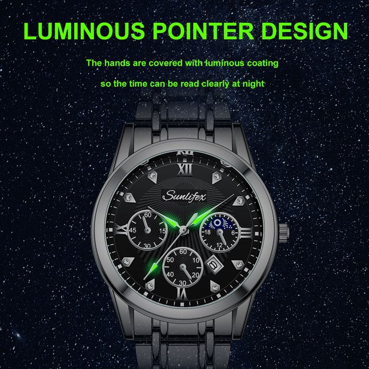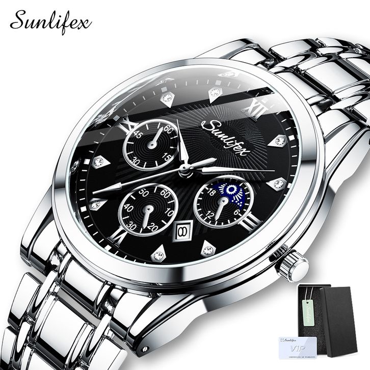 Sunlifex Jam Tangan Pria Original 9004A Kuarsa Calendar Tali Stainless Steel Mode Santai Jam Tangan